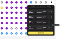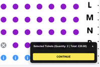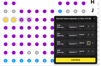 A: Locate the ‘Selected Tickets’ box on the bottom right of the seatmap (you may have to scroll down your page to find it). Click the circle to navigate to your current seats and add more seats next to yours. If you want to remove seats, click the rubbish bin.