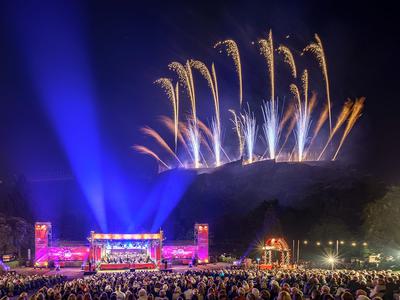 You can see the fireworks and the concert right at the foot of the castle in Princes Street Gardens. It’s conveniently central, and makes the perfect fairy tale setting for the end of the International Festival. You have the castle towering above you, hopefully bathed in pink from one of Edinburgh’s famously gorgeous sunsets before it gets dark enough to shoot fireworks from its battlements - including our famous waterfall, which cascades down the hill towards you.