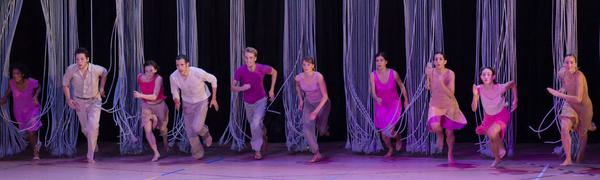 Ten dancers trace intricate spirals, circles and lines across a bare stage, their space defined only by a curtain of fine strings. Weaving together a complex tapestry of movements, their gestures shift, interlock and overlap, accompanied by the unstoppable momentum of Reich’s pulsations.