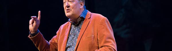 Enthroned in a sumptuous armchair, and surrounded by hanging banners, projections and animations, Fry weaves comic anecdotes and disarming ad libs into his encyclopaedic survey of the greatest tales ever conceived – from tongue-in-cheek pomp to deeply moving insight.