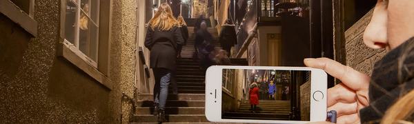 Canadian artists Janet Cardiff and George Bures Miller present an intimate, one-on-one video walk in which the audience are guided by specially created video through Edinburgh’s Old Town at twilight. The sound is recorded using binaural microphones to create a three-dimensional sound experience as Cardiff’s voice leads you on a journey through the city past and present, conjuring a parallel Edinburgh that engages all the senses.