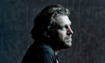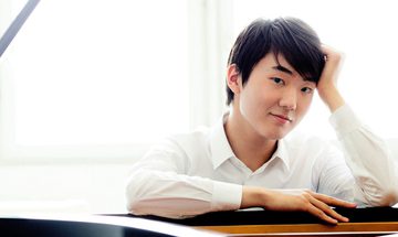 5. The Quartet pictured with their instruments, dressed in formalwear and standing against a library backdrop.