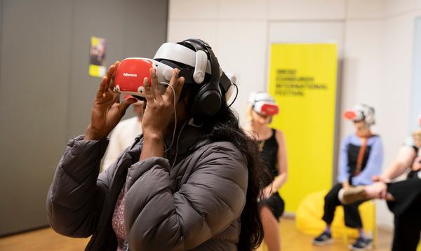 In August 2024, our Community Connections Hub hosted a VR experience, to welcome people to experience an orchestra for the first time through an innovative experience accessible to all. The Virtual Reality (VR) experience transports the wearer to an immersive performance of Nicola Benedetti performing The Lark Ascending by Ralph Vaughan Williams with the Philharmonia Orchestra.
