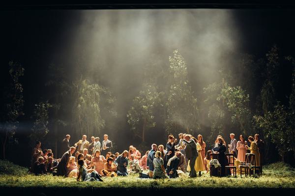 The chorus sung magnificently and created a real sense of celebration. This contrasted with the dreamy isolation of Tatyana, who for the most part sat aloof from the crowd, engrossed in her book, a symbol of her romantic nature. Asmik Grigorian’s performance of the lovestruck Tatyana, especially her aria in which she expresses her longing for Onegin, was heart-breaking.