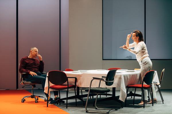 Robert Icke’s version of Oedipus starts under the bright, fluorescent lights of a campaign headquarter’s kitchen in the countdown to the announcement of results following a tense recent election. Oedipus is a main contender and public favourite. Together with his extended family, Oedipus tragically pieces together his own history, namely his relationship with Jocaste - his wife, and shockingly, mother - all while the clock counts down.