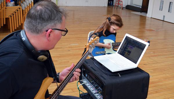 The following day, Malcolm Crosbie (guitar) and Quee Macarthur (bass) visited the Lyra Youth Music project in Craigmillar and worked alongside regular Lyra tutors to deliver a composition and recording workshop. After some highly entertaining warm-up games, the group sat in a circle while Malcolm and Quee spoke about the band’s origins, where the name ‘Shooglenifty’ came from and Malcolm told a hilarious story about how his home-made amp once caught fire at home when he was younger.