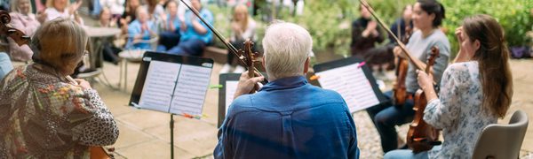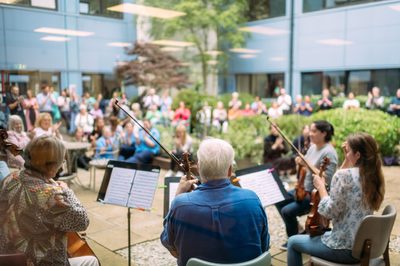 Patients, staff and volunteers were transported into a tranquil realm as the London Symphony Orchestra (LSO) performed in hospital gardens and selected wards. Throughout the course of the fifteen performances, over 1,000 staff, patients and visitors were provided musical moments of respite within their busy days.